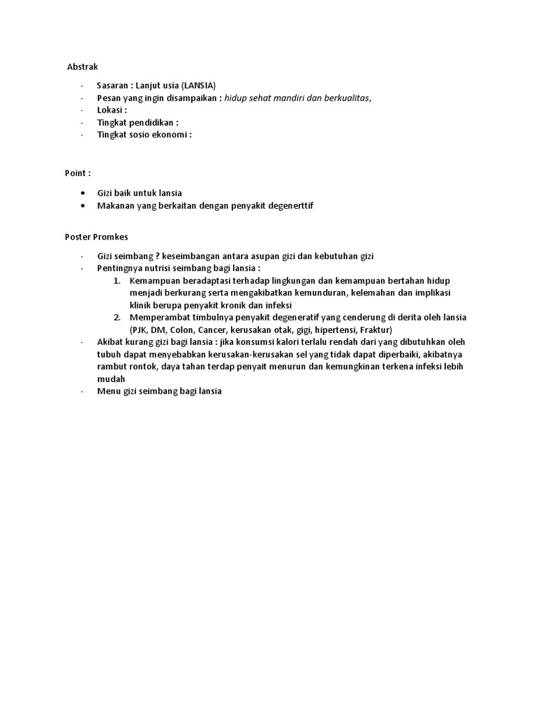- Sasaran : Lanjut usia (LANSIA)