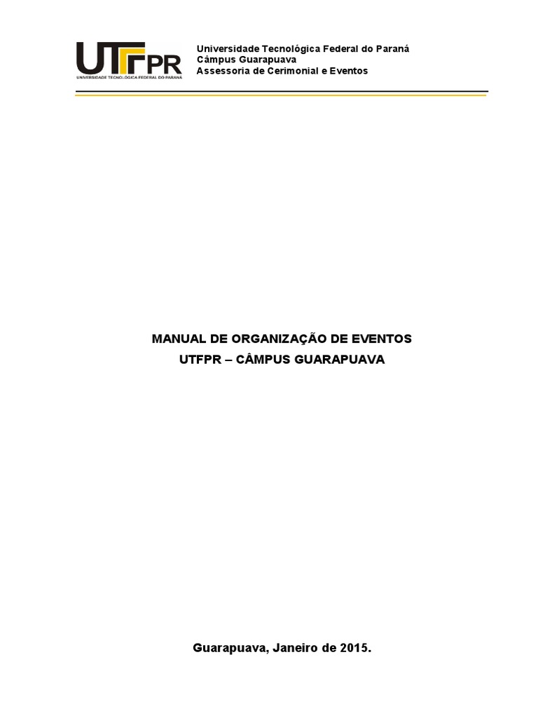 MANUAL DE ORGANIZAÇÃO DE EVENTOS UTFPR – CÂMPUS GUARAPUAVA