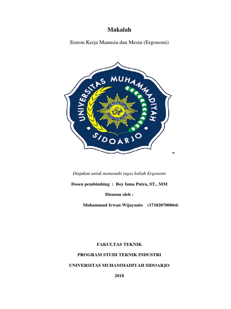 makalah tentang Ergonomi dengan tema system kerja manusia vs mesin.
