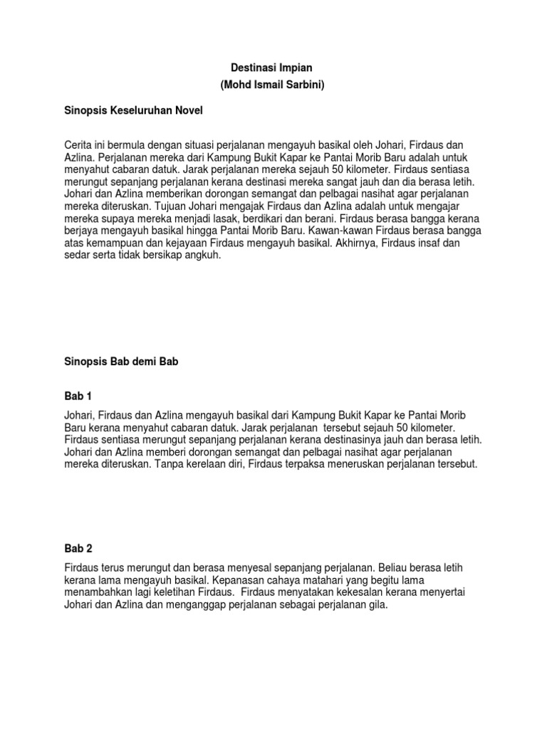 Sinopsis Keseluruhan Novel