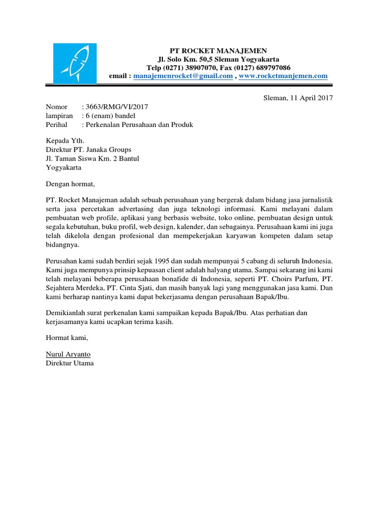Demikianlah surat perkenalan kami sampaikan kepada Bapak/Ibu. Atas perhatian dan