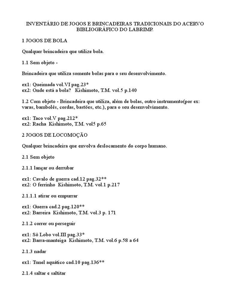 o brinquedo (brincadeira) até que passem ou fiquem todas. BATISTA, Maria