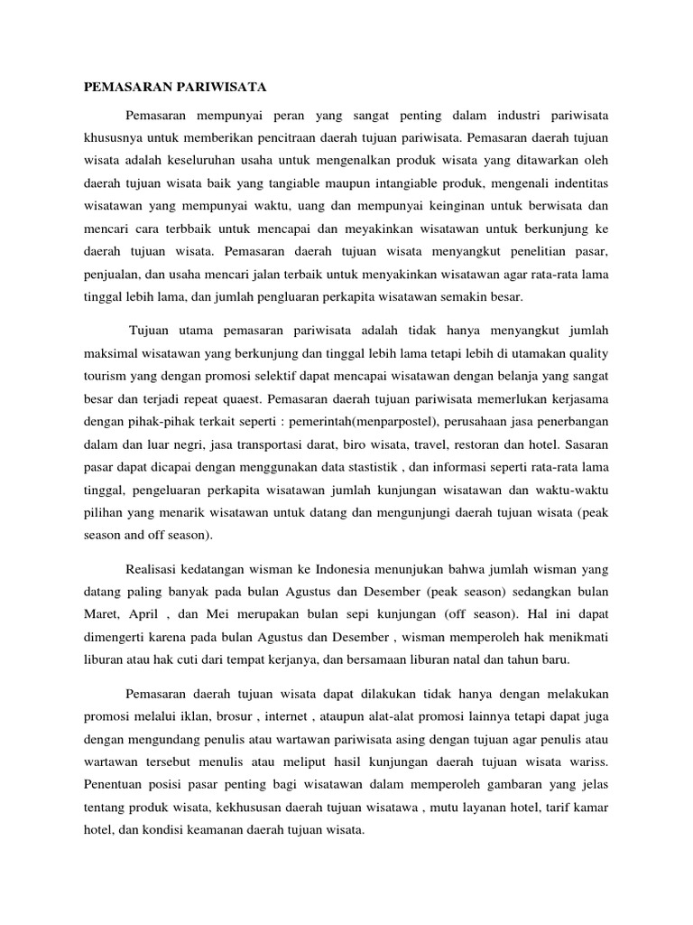Pemasaran mempunyai peran yang sangat penting dalam industri pariwisata