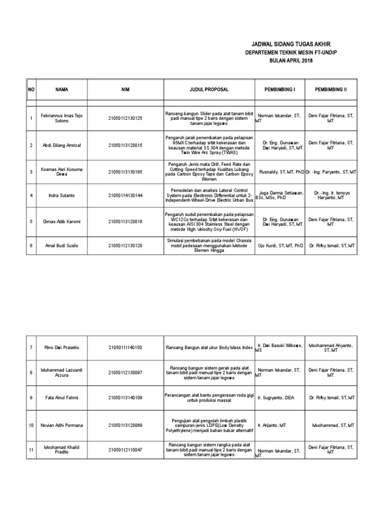 Ir. Yurianto, MT Selasa 16/04/2018 10.00 B.202