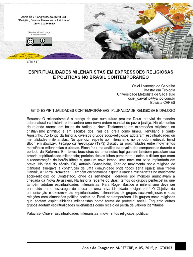 comunicação é descrever as espiritualidades milenaristas de grupos sócio-religiosos e suas
