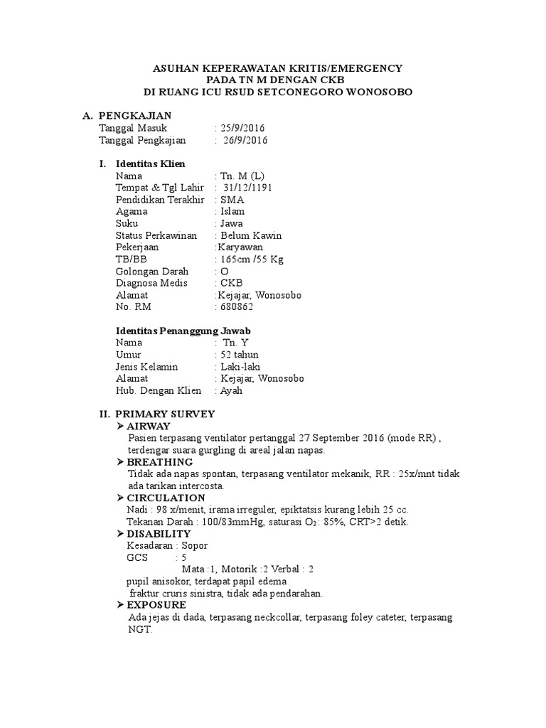 RSUD setjonegoro Wonosobo. Terjadi subatan jalan napas, kesadaran sopor
