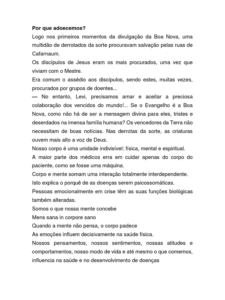 Isto explica o porquê de as doenças serem psicossomáticas.
