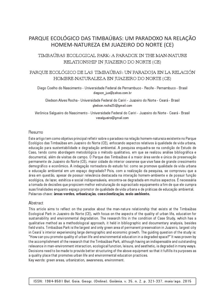 Parque Ecológico das Timbaúbas: um paradoxo na relação homem-natureza em Juazeiro...