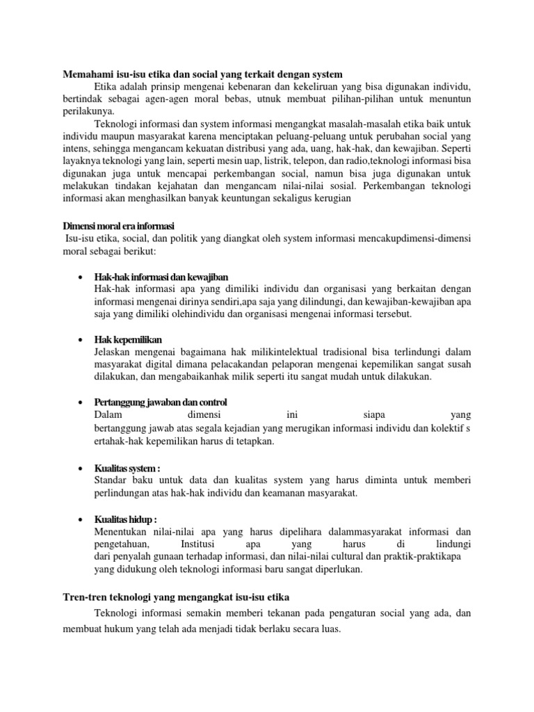 Teknologi informasi dan system informasi mengangkat masalah-masalah etika baik untuk