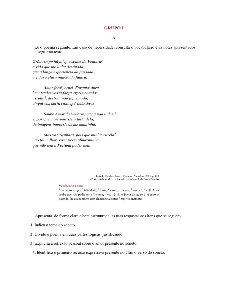 1 há muito tempo; 2 felicidade; 3 feroz; 4 a sorte, o acaso; 5 arruinai; 6 v. 9: Amor