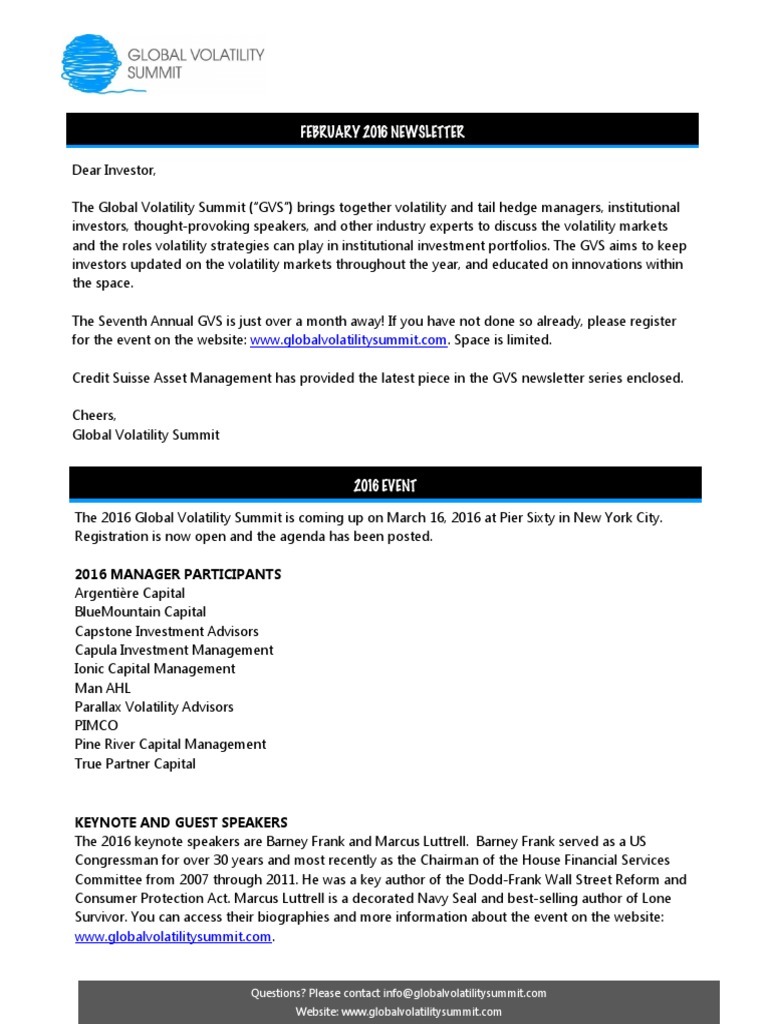 Questions? Please contact info@globalvolatilitysummit.com Website: www.globalvolatilitysummit.com