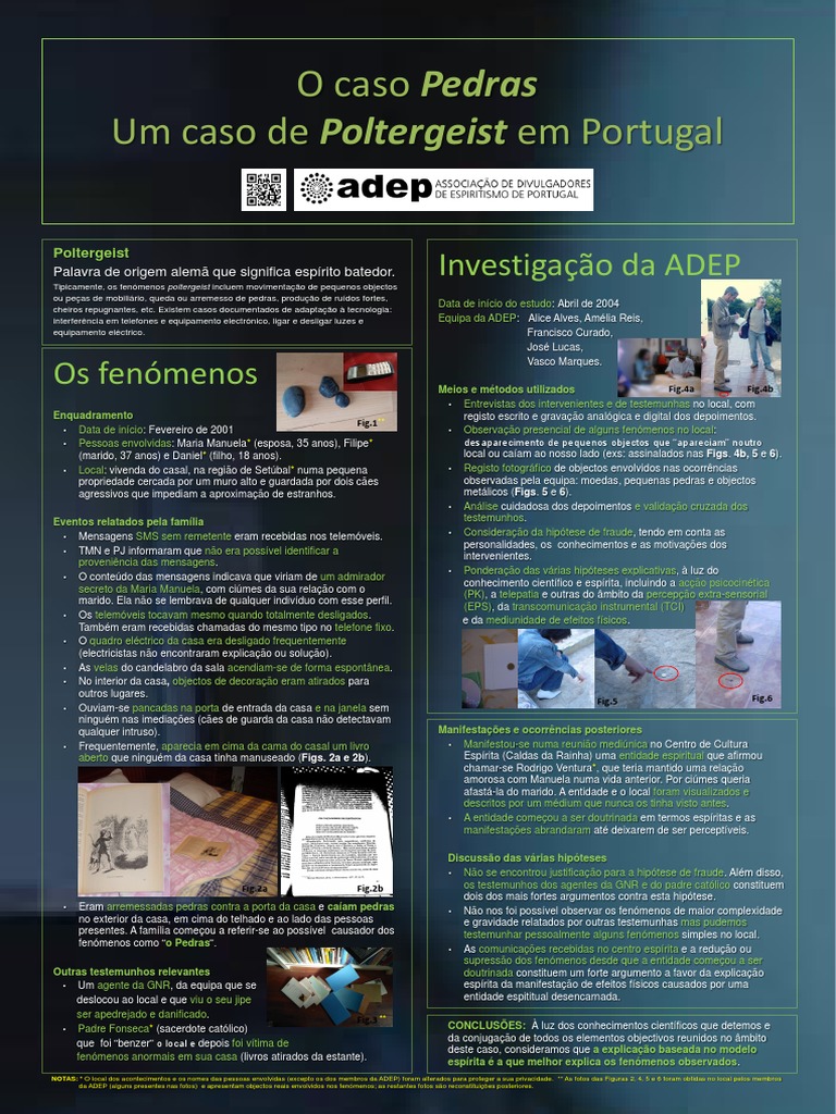 • Eram arremessadas pedras contra a porta da casa e caíam pedras • Não nos foi possível observar os fenómenos de maior complexidade