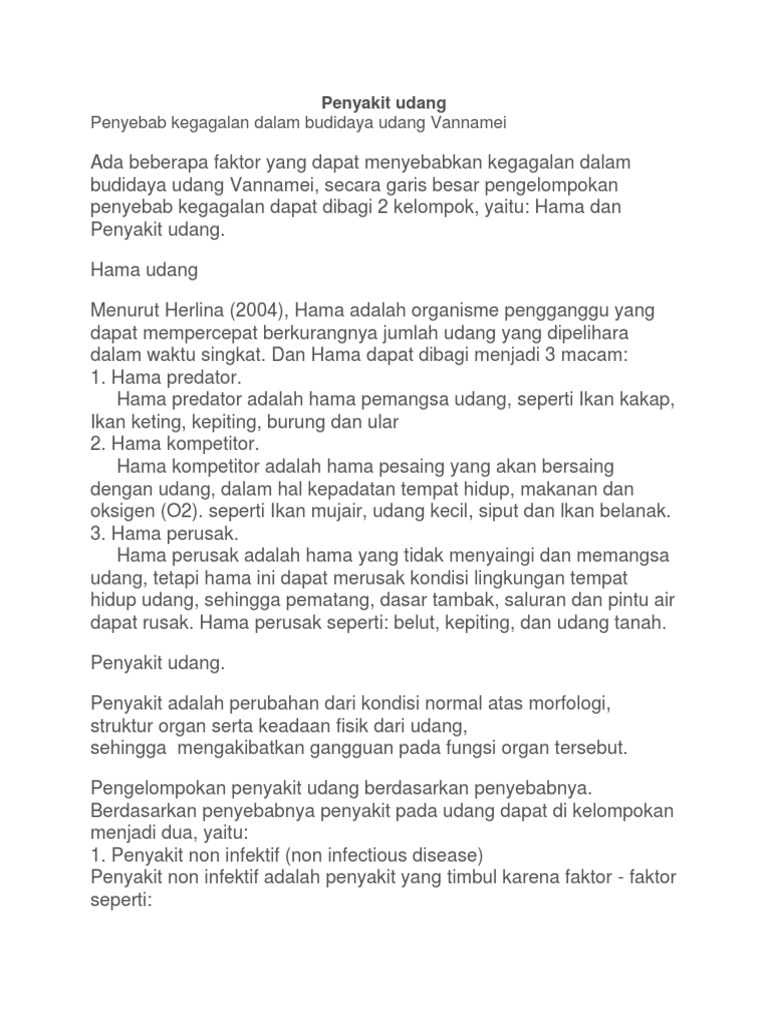 Ulasan mengenai Hama dan Penyakit udang ada di rinci pada post-