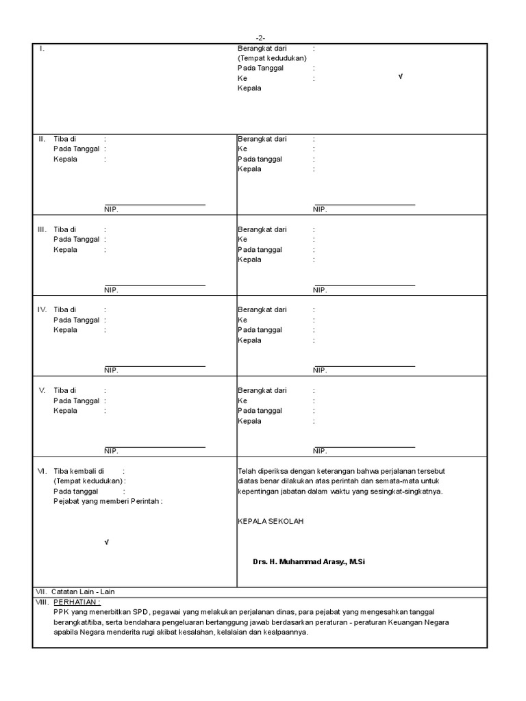 VI. Tiba kembali di : Telah diperiksa dengan keterangan bahwa perjalanan tersebut
