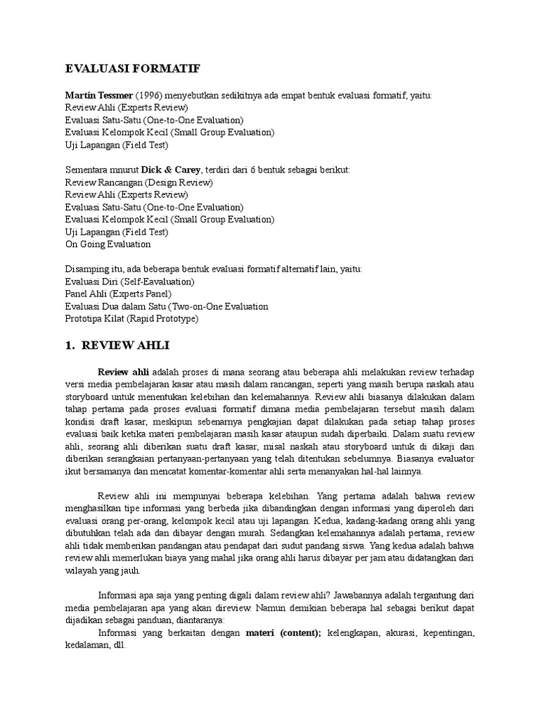 evaluasi baik ketika materi pembelajaran masih kasar ataupun sudah diperbaiki. Dalam suatu review