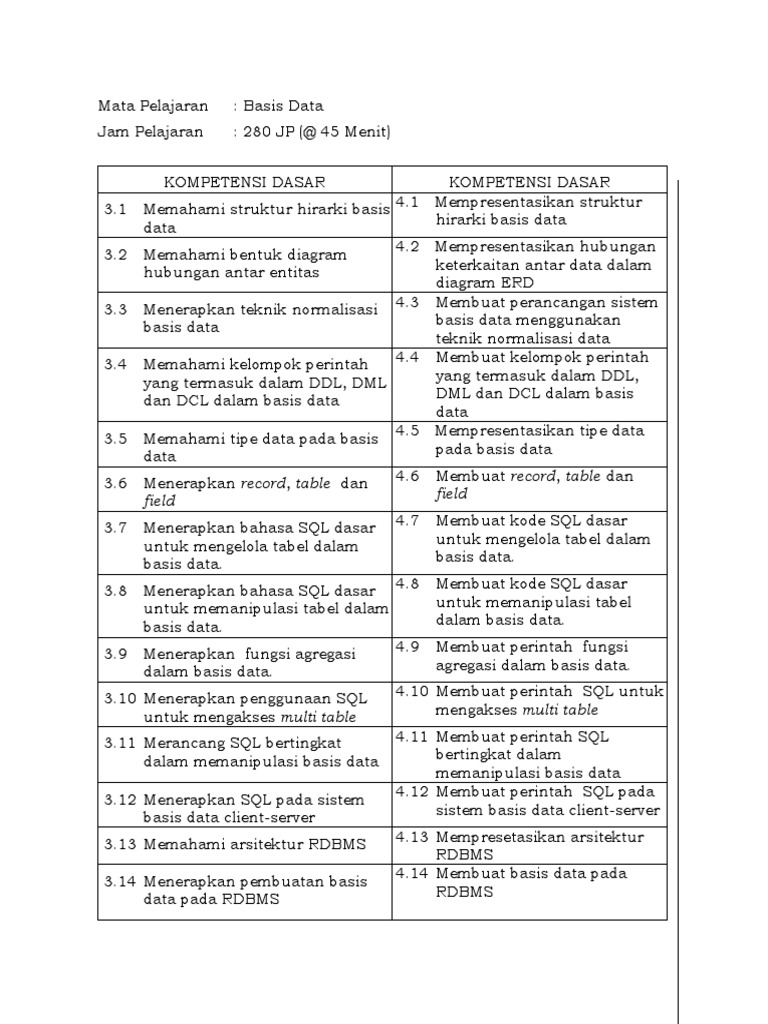 3.8 Menerapkan bahasa SQL dasar 4.8 Membuat kode SQL dasar