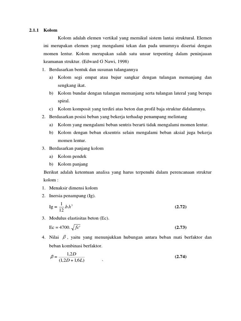 Termasuk kolom panjang atau langsing apabila memenuhi rumus 2.82