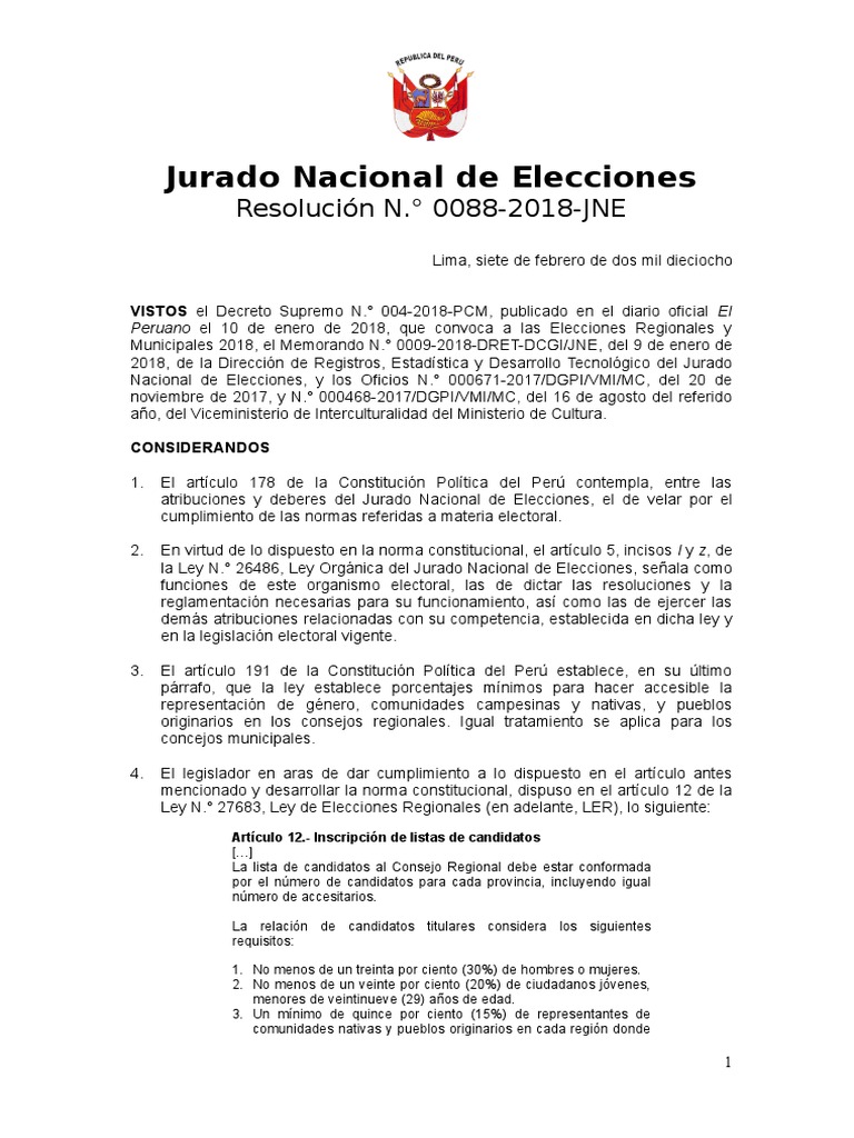 Resolución N.° 0088-2018-JNE
