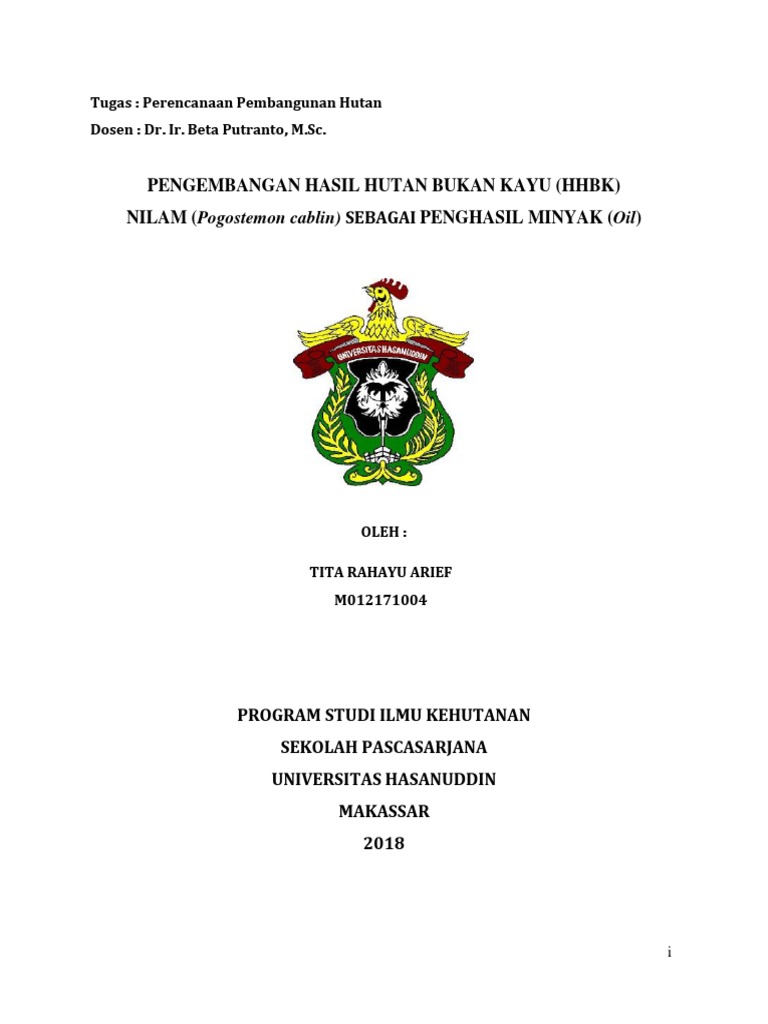 “Pengembangan Hasil Hutan Bukan Kayu (HHBK) Nilam (Pogostemon cablin) Sebagai