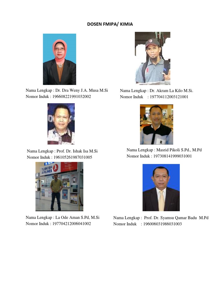 Nama Lengkap : Prof. Dr. Ishak Isa M.Si Nama Lengkap : Masrid Pikoli S.Pd., M.Pd