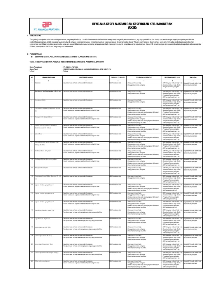 Rencana K3 Kontrak Jalan Padang Sawah