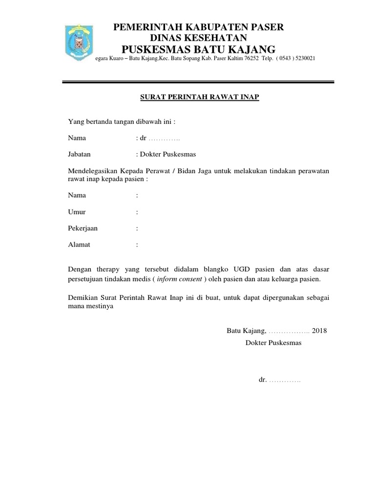 Demikian Surat Perintah Rawat Inap ini di buat, untuk dapat dipergunakan sebagai