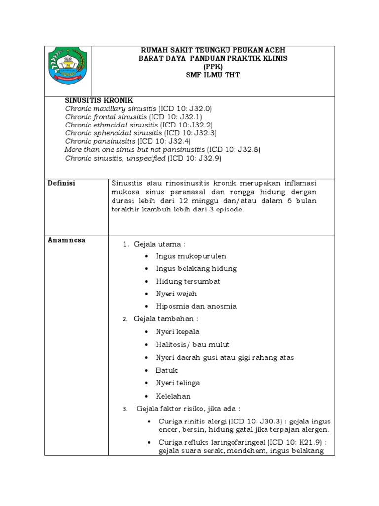Definisi Sinusitis atau rinosinusitis kronik merupakan inflamasi