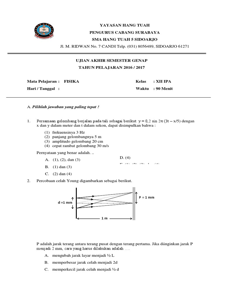 Mata Pelajaran : FISIKA Kelas : XII IPA