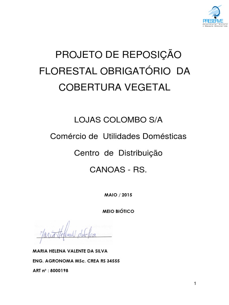 Este Projeto de reposição floresta obrigatória, tem por objetivo propor medidas