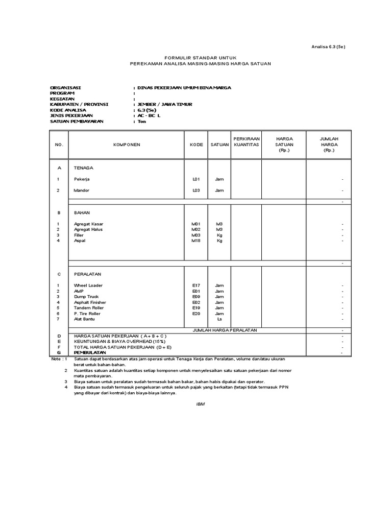 Note : 1 Satuan dapat berdasarkan atas jam operasi untuk Tenaga Kerja dan Peralatan, volume dan/atau ukuran