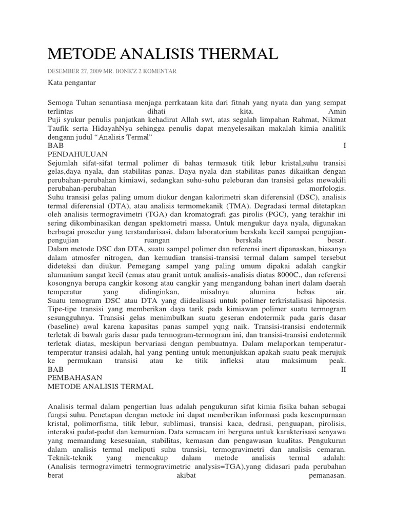 Analisa termal merupakan suatu perlakuan ketika suatu bahan diuji dengan variasi suhu,