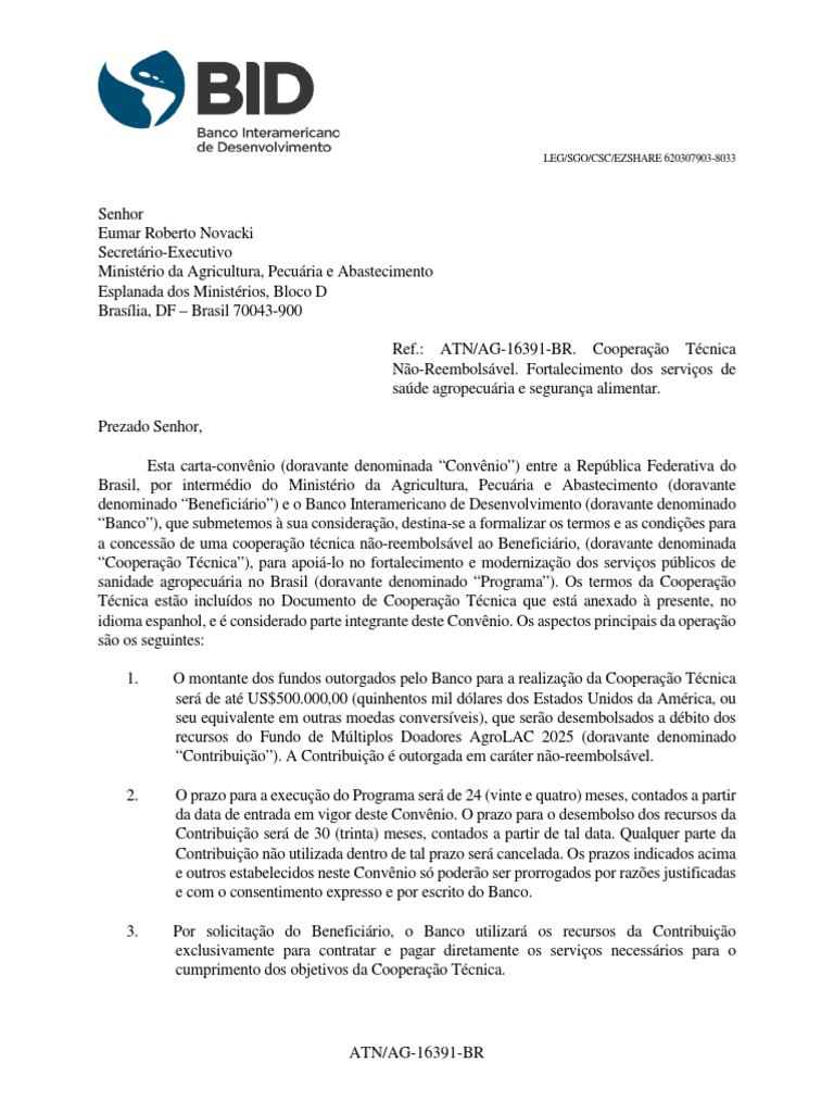 Ref.: ATN/AG-16391-BR. Cooperação Técnica