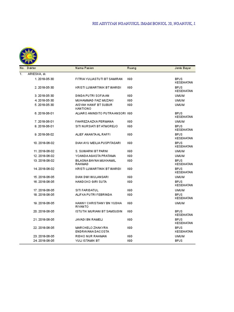 Rekap Pasien IGD RSI Aisyiyah Nganjuk