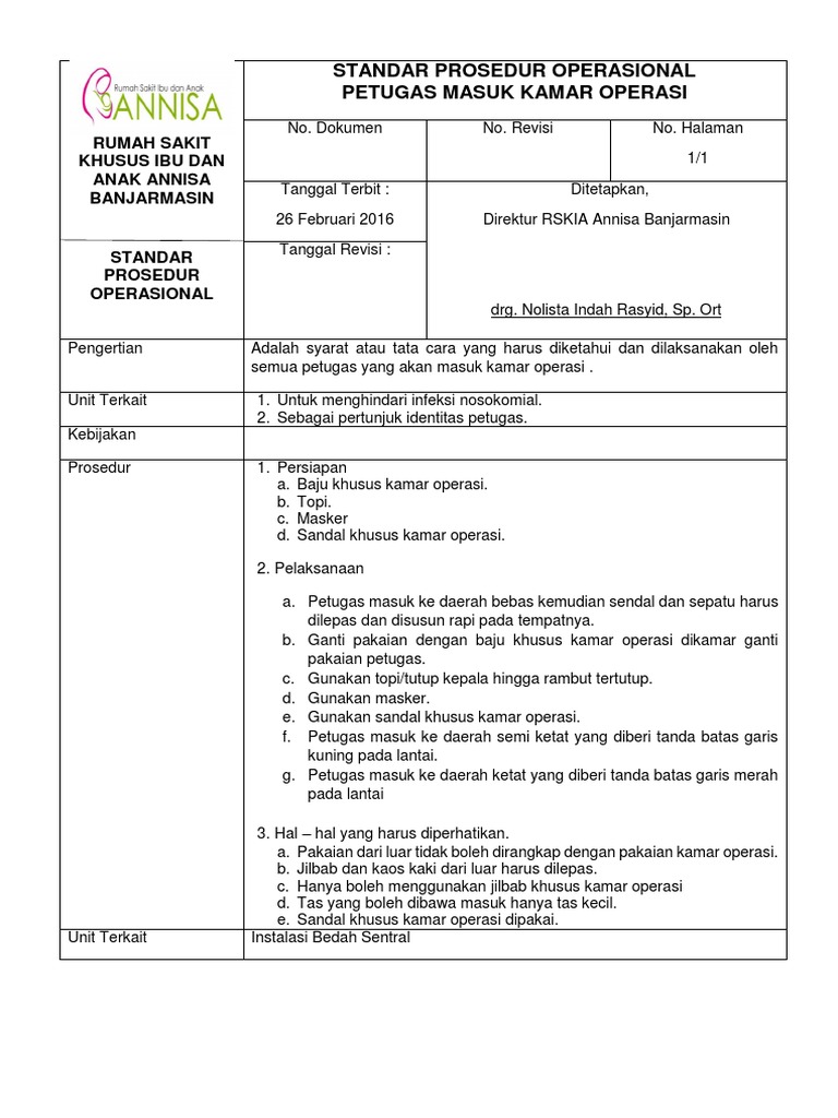 Pengertian Prosedur yang mengatur pengelolaan dan pelayanan kamar operasi agar