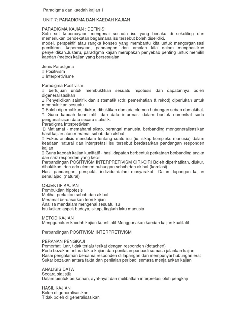 UNIT 7: PARADIGMA DAN KAEDAH KAJIAN