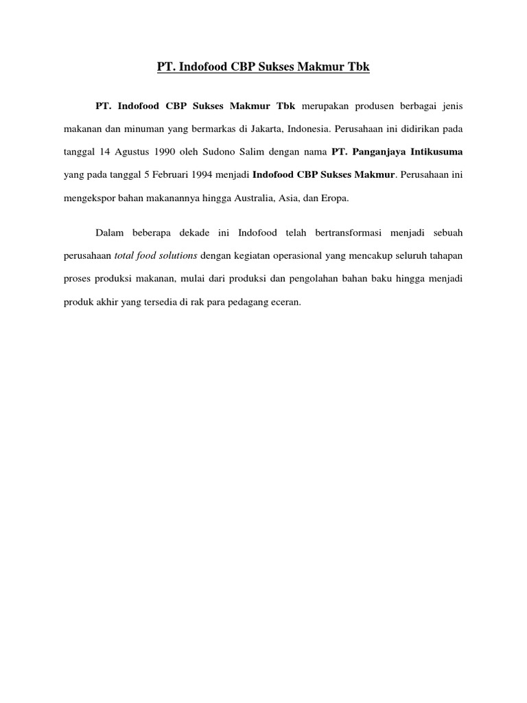 yang pada tanggal 5 Februari 1994 menjadi Indofood CBP Sukses Makmur. Perusahaan ini