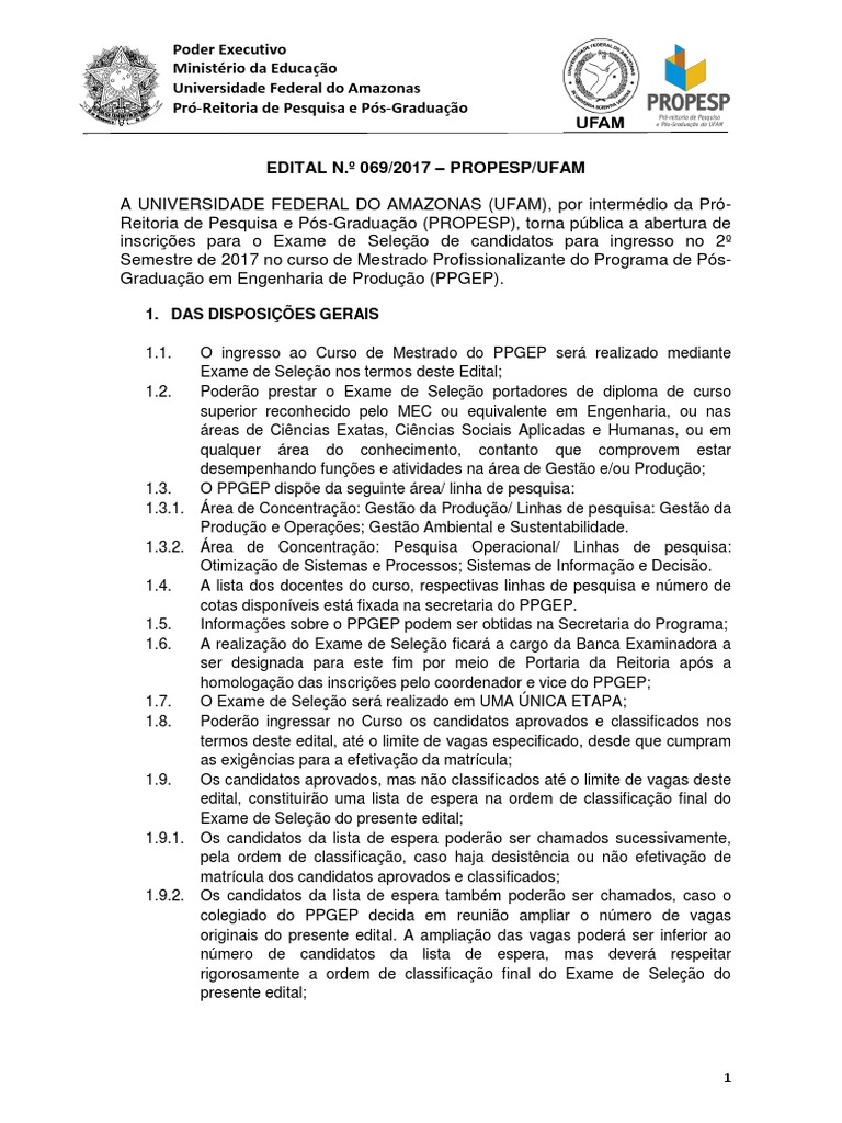 EDITAL N.º 069/2017 – PROPESP/UFAM