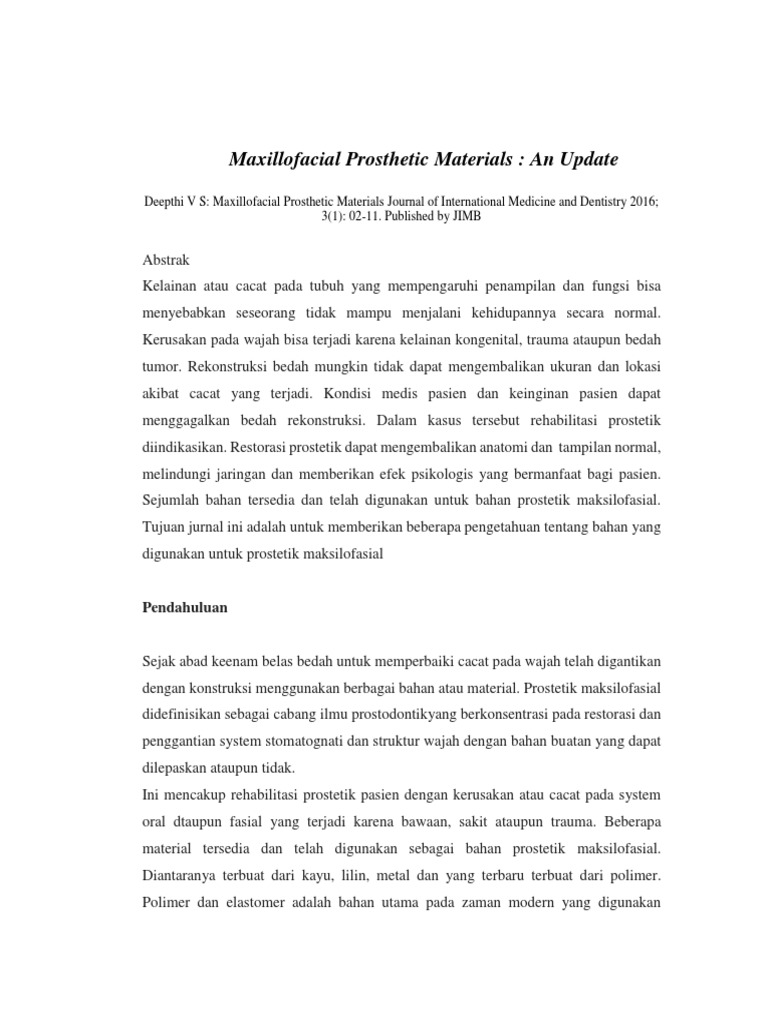 tentang bahan yang digunakan saat ini untuk pembuatan prostesis maxillofacial