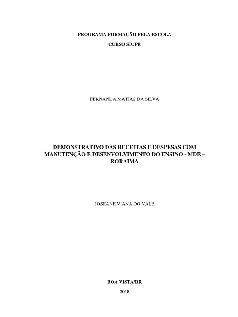 do estado de Roraima, a respeito da aplicação dos recursos na manutenção e desenvolvimento