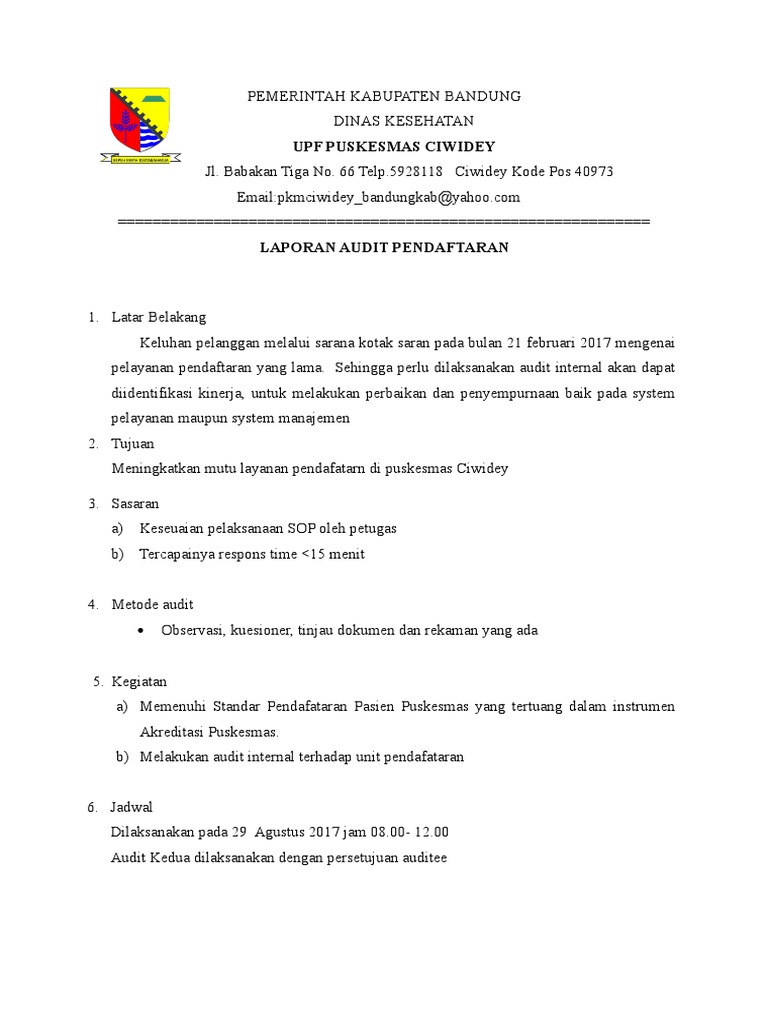Nama unit yang diaudit : Unit Pelayanan Pendaftaran Puskesmas Ciwidey