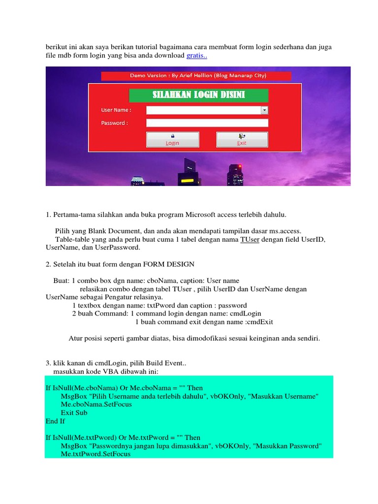 file mdb form login yang bisa anda download gratis..