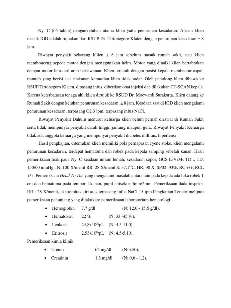 Ny. C (65 tahun) dengankeluhan utama klien yaitu penurunan kesadaran.