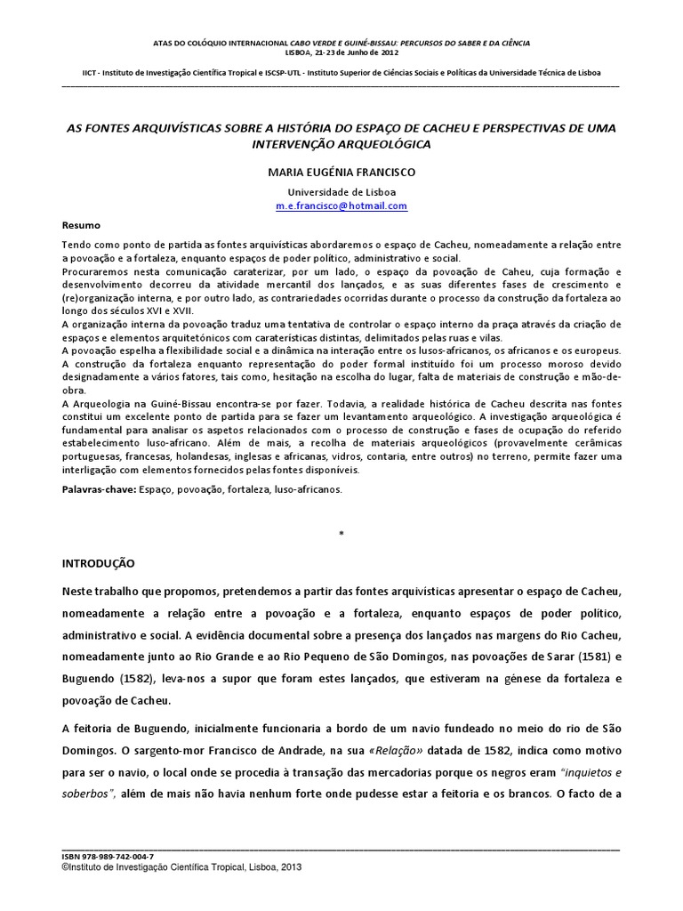 AS FONTES ARQUIVÍSTICAS SOBRE A HISTÓRIA DO ESPAÇO DE CACHEU E PERSPECTIVAS DE UMA INTERVENÇÃO ARQUEOLÓGICA