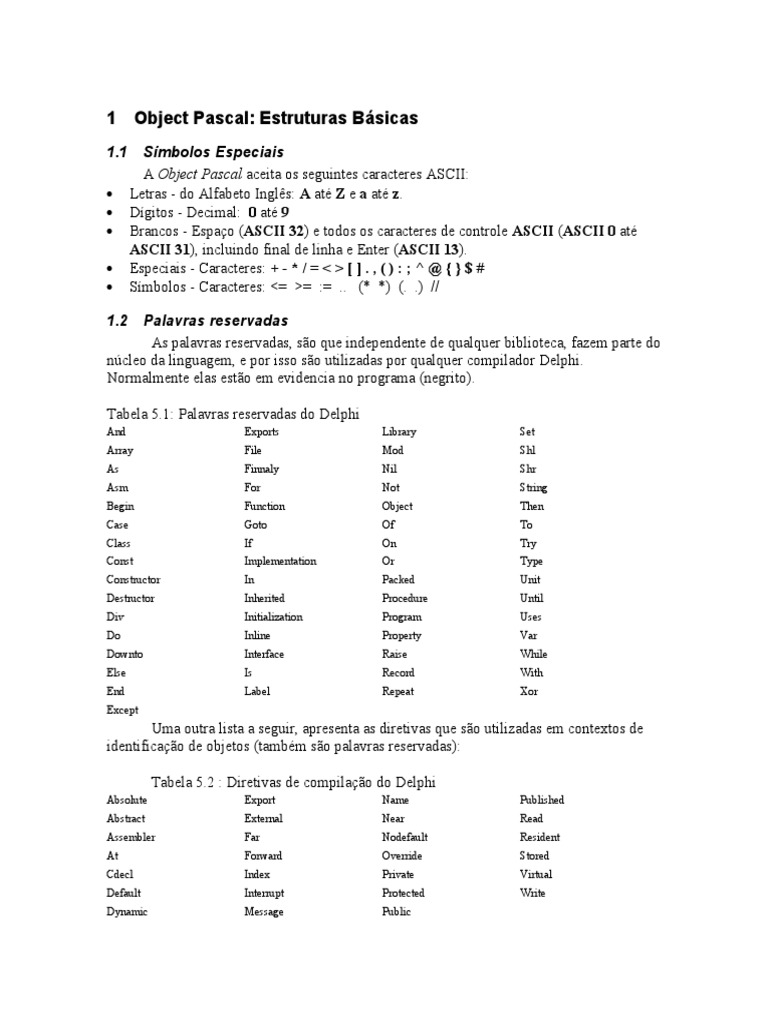 O Delphi Possui uma estrutura de operadores muito parecida com a do pascal,