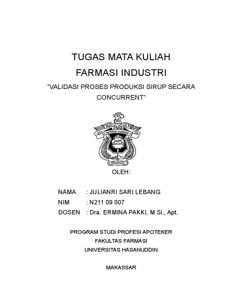 TUGAS VALIDASI PROSES PRODUKSI SIRUP CONCURRENT