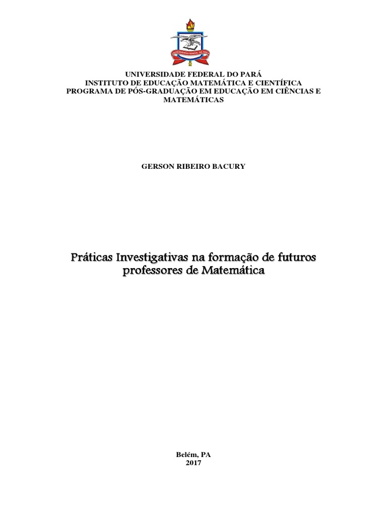 Bacury, Gerson Ribeiro. 1974– Práticas investigativas na formação de futuros professores de matemática / Gerson Ribeiro Bacury, orientador Prof. Dr. Tadeu Oliver Gonçalves – 2017.