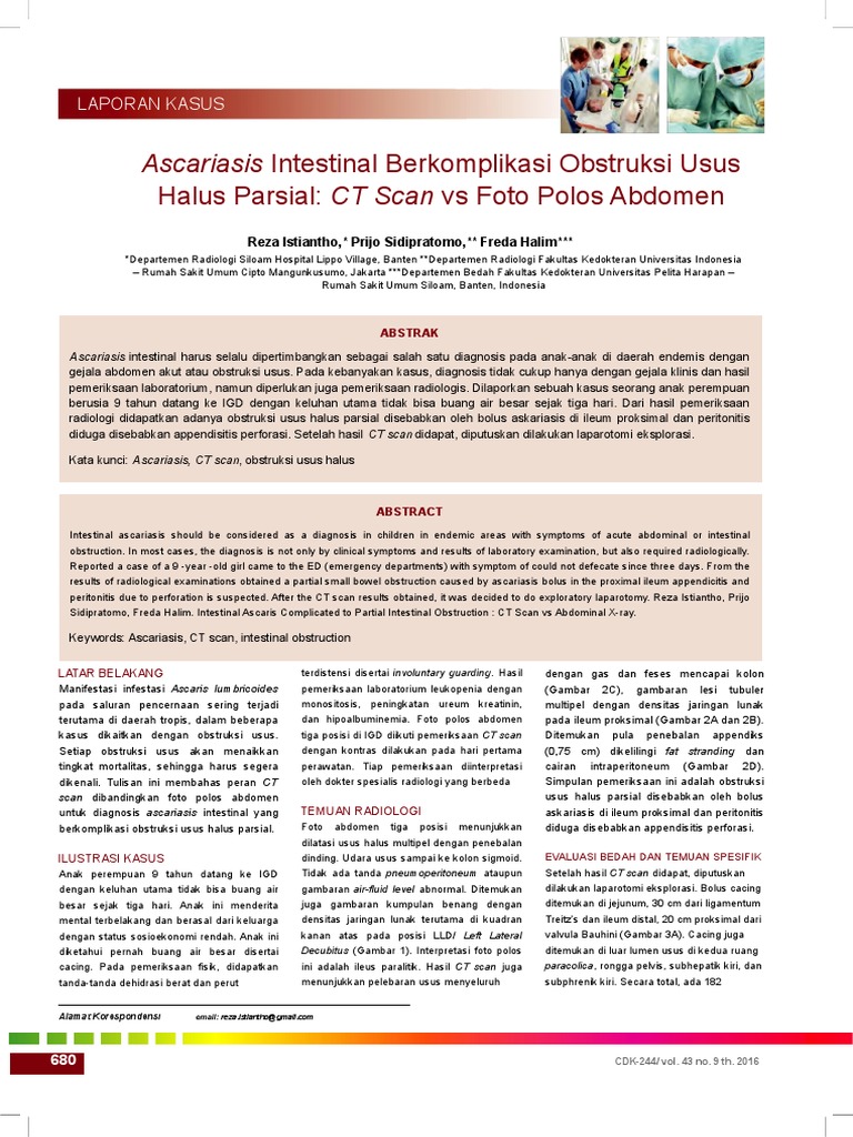 Kata kunci: Ascariasis, CT scan, obstruksi usus halus