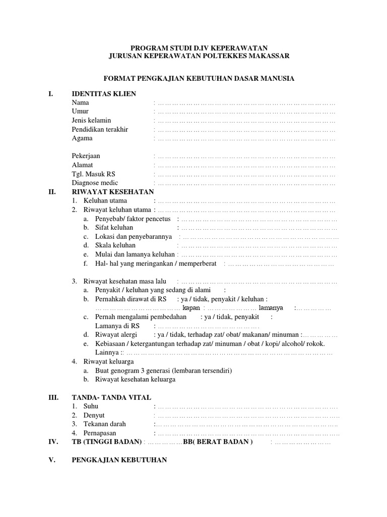 10. Saat kapan klien merasa nyeri : berjalan :…………. ….duduk : ………………………………