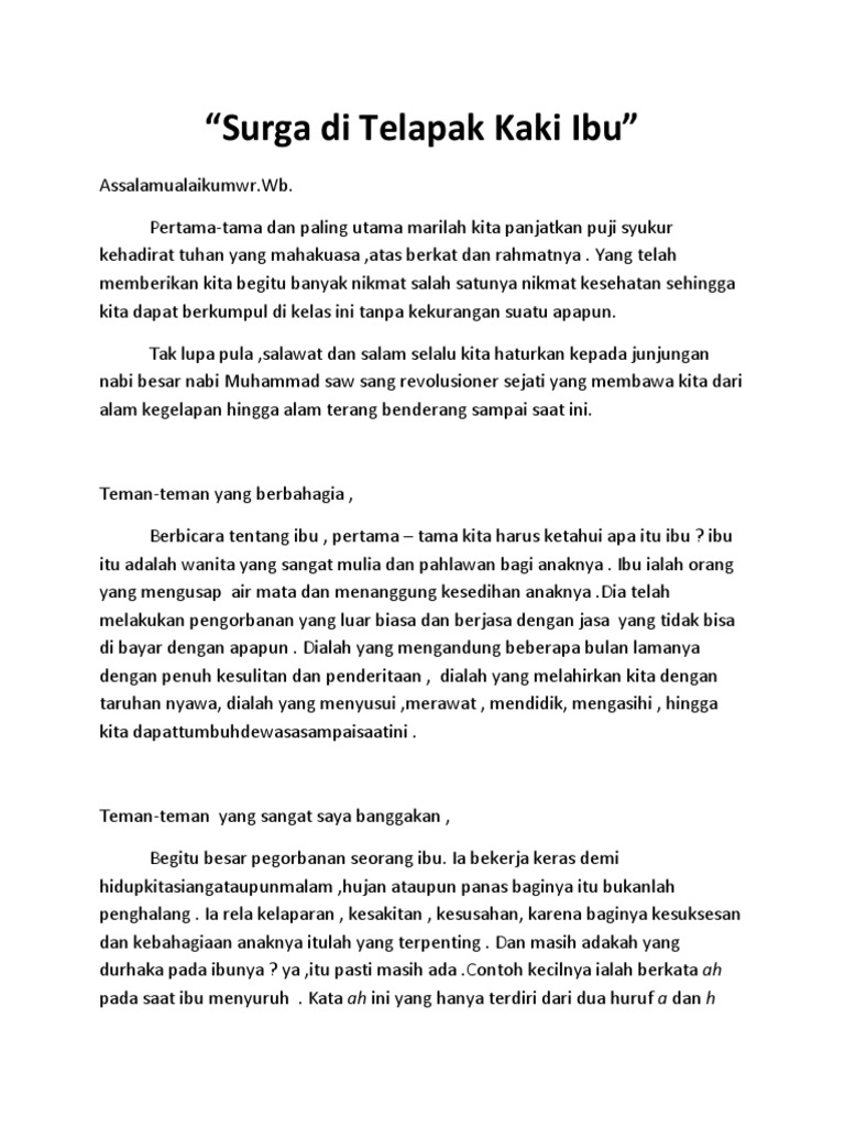 Demikian pidato mengenai surga di telapak kaki ibu ini semoga pidato yang