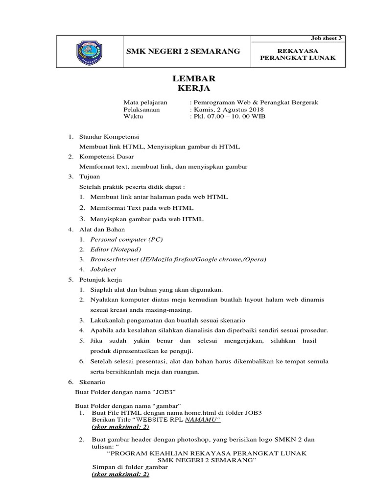Mata pelajaran : Pemrograman Web & Perangkat Bergerak